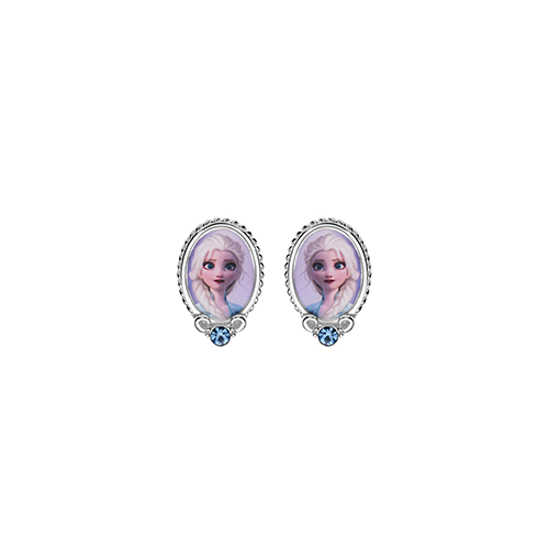 Er du vild med Frozen? Se lige disse skønne ørestikker med et billede af Elsa og blå zirkon.