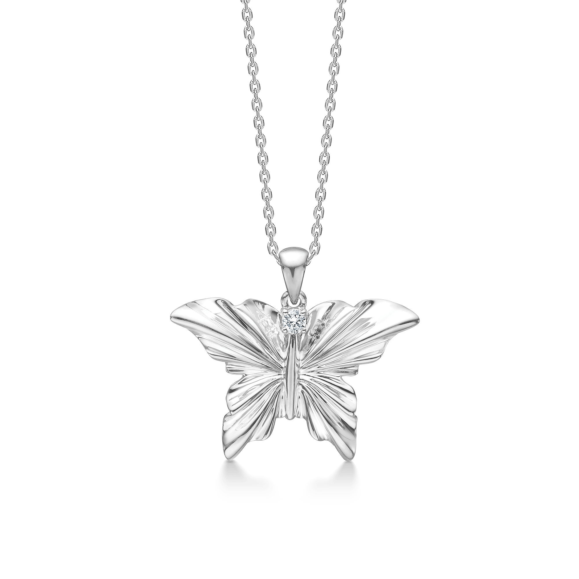 Monarch sølv halskæde fra Mads Z med hvid facetsleben topas – vedhænget måler 16 mm.