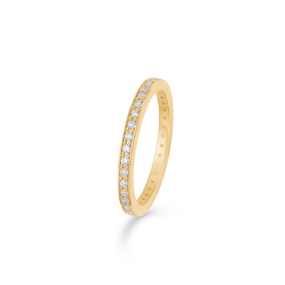 Lækker detaljeret 'Poetry' Mads Ziegler 14 karat ring. Ringen er prydet med brillant slebne diamanter hele vejen rundt, samlet udgør den 0,33ct. W.SI.