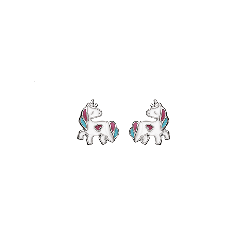 Rhodineret sølv armbånd med enhjørning hoved, hvid med pink, blå og gul emalje. Længde på armbånd 13-15-17 cm.