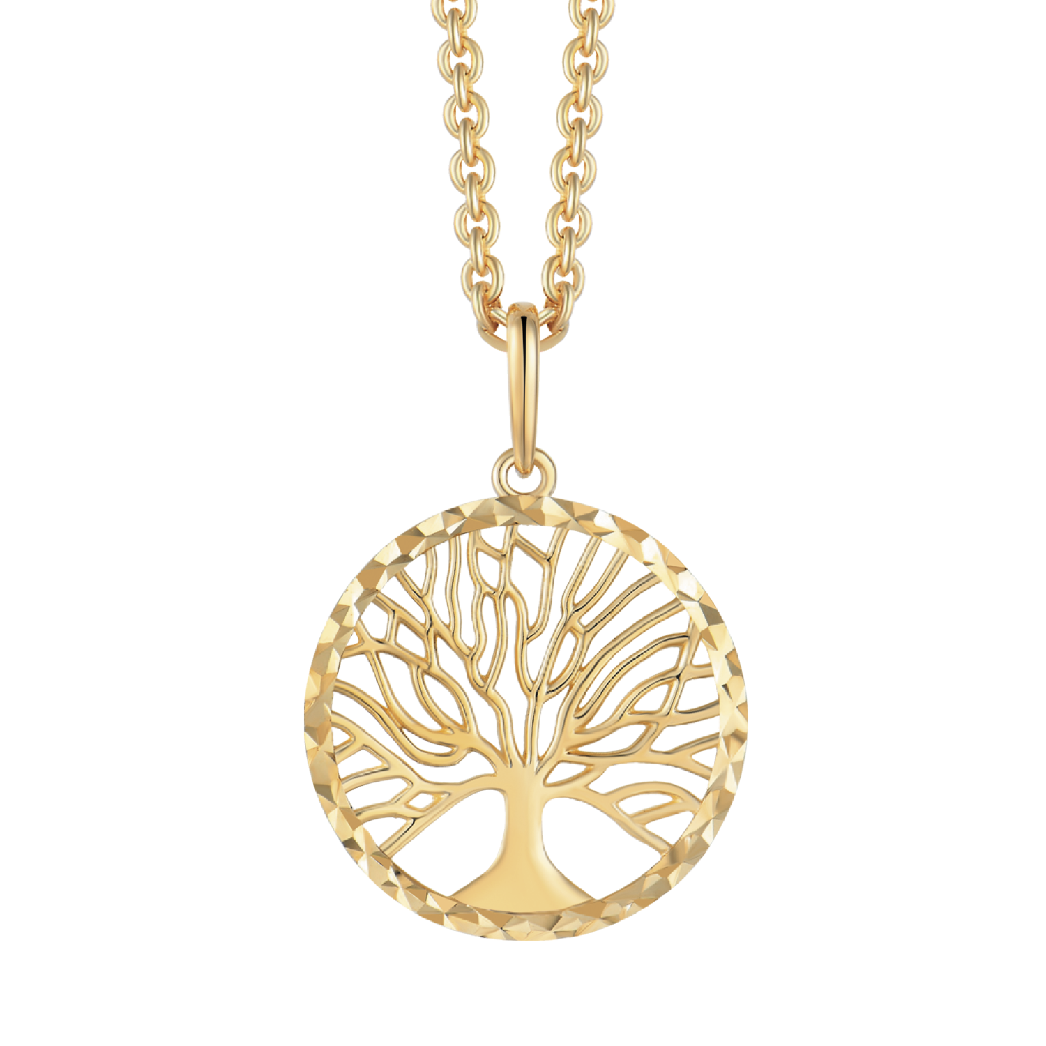 Smukt livets træ vedhæng fra Støvring Design. Vedhænget er i 8 karat guld, men kæden er i forgyldt sølv.