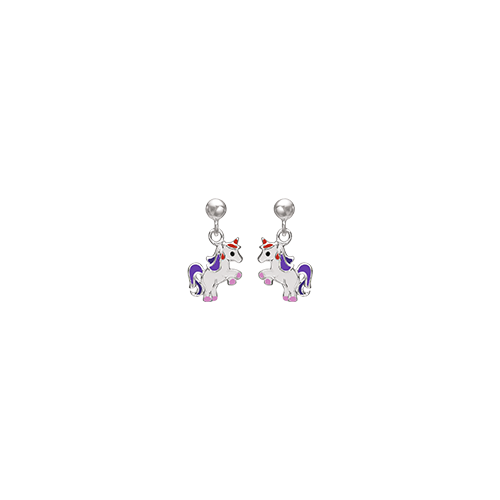 Sølv ørehænger med enhjørninger med farverig emalje.